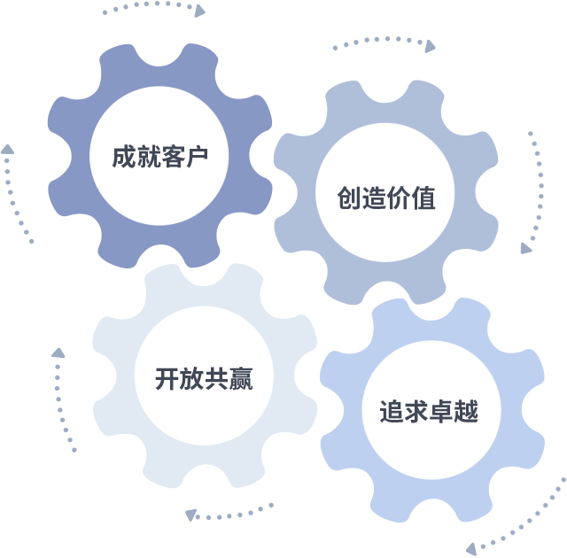 成就客户是一切决策的出发点,创造价值是衡量所有工作的标准,追求卓越是blb百乐博做事做人的态度,开放共赢是blb百乐博的格局也是最终的结果。价值观的齿轮环环相扣,推动着组织里的每个人不断向前。